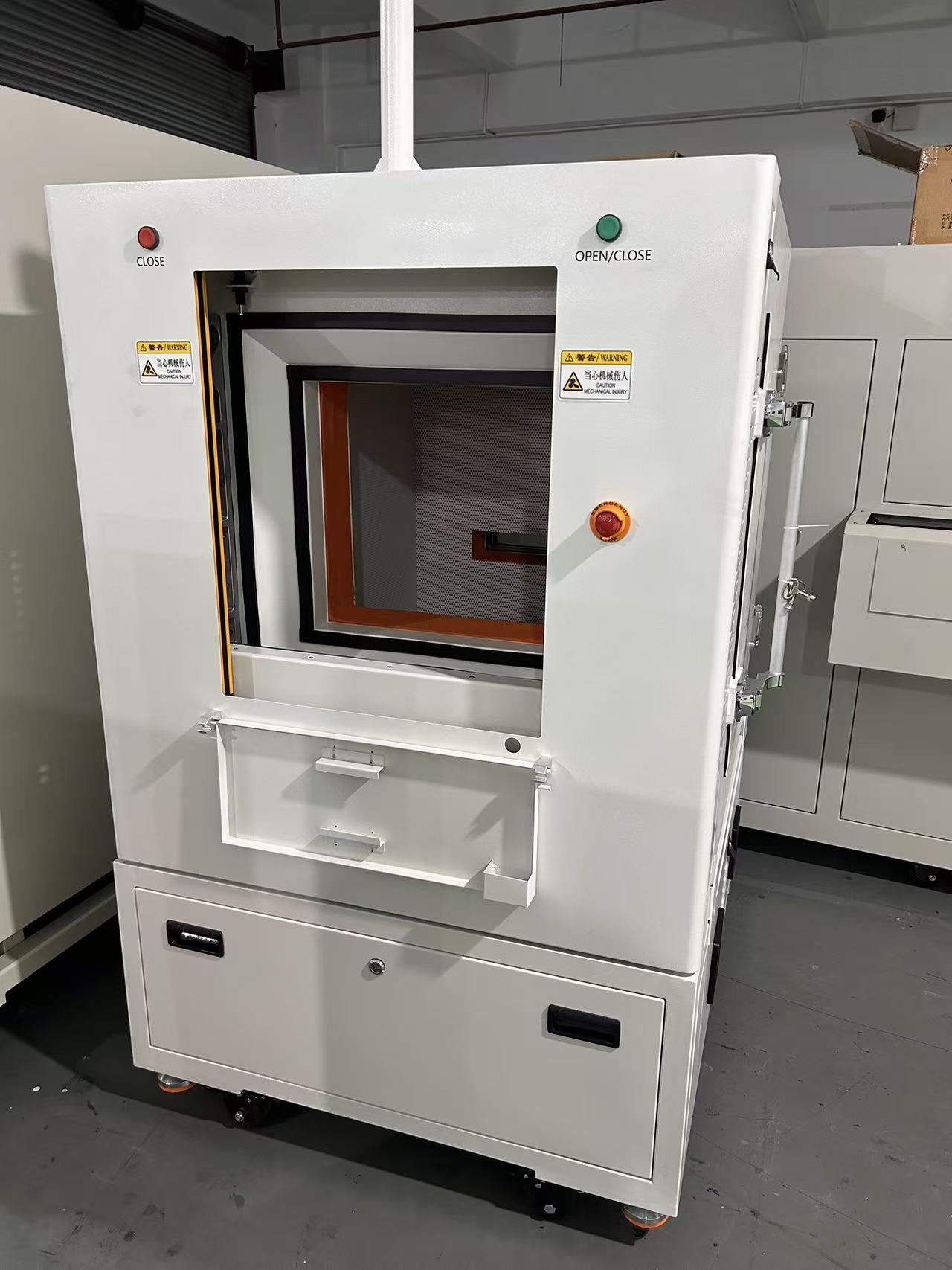 主要功能及適用范圍:為產(chǎn)品提供隔聲測試環(huán)境,隔音箱設(shè)有移動(dòng)工作臺(tái),帶移動(dòng)腳輪,方便搬運(yùn);隔音箱跟工作臺(tái)接觸面做減震處理,確保良好的減震效果。工作臺(tái)可以放置測試儀器、測試電腦,并具部散熱功能。
